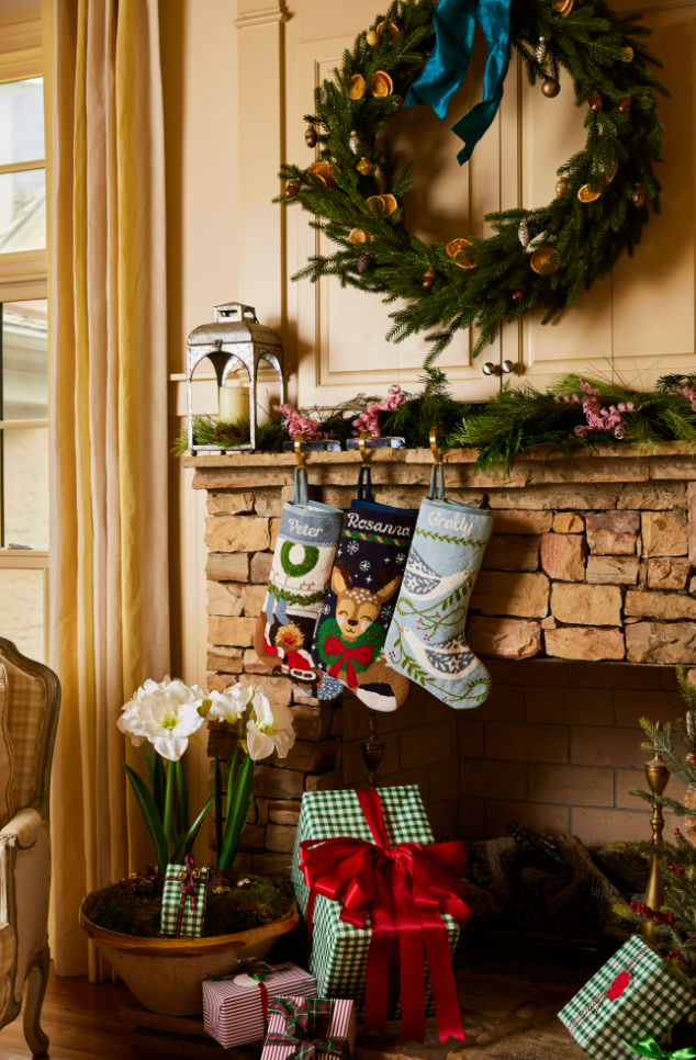 Each needlepoint stocking is hand-stitched in Haiti for fair trade by a certified BCorp.