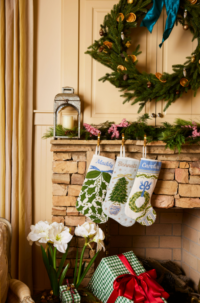 Each needlepoint stocking is hand-stitched in Haiti for fair trade by a certified BCorp.