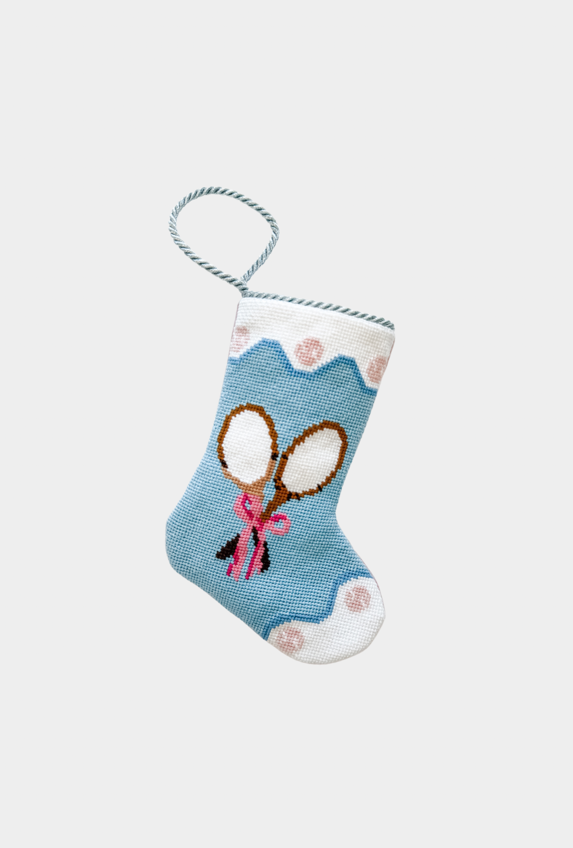 Serve up some holiday glam. The Limited Edition Palm Beach Lately "Ready to Rally" in Blue with art by Frances Abel Bauble Stocking is a perfect match of sporty charm and coastal elegance. Hand-stitched needlepoint and court-side flair make this keepsake a win for tennis lovers, stylish traditionalists, and even a sweet way to celebrate the baby’s first step into holiday traditions.